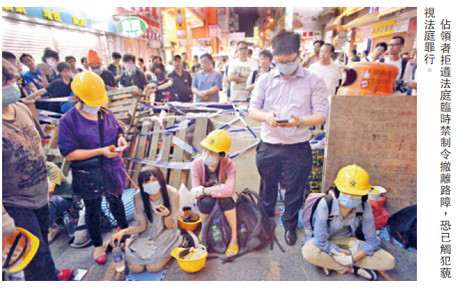 另外,香港高等法院昨日頒發書面判詞,解釋20號頒布禁制令的理據。高院法官潘兆初在裁決中表示,雖然基本法保障示威集會權利,但無人可以獨霸道路。判詞又提到,不同意佔領運動是「公民抗命」,運動規模龐大又持續多日,影響很多人,存在演變成騷亂的實質風險,無論背後有多高尚的原因,都不可視之為公民抗命。
