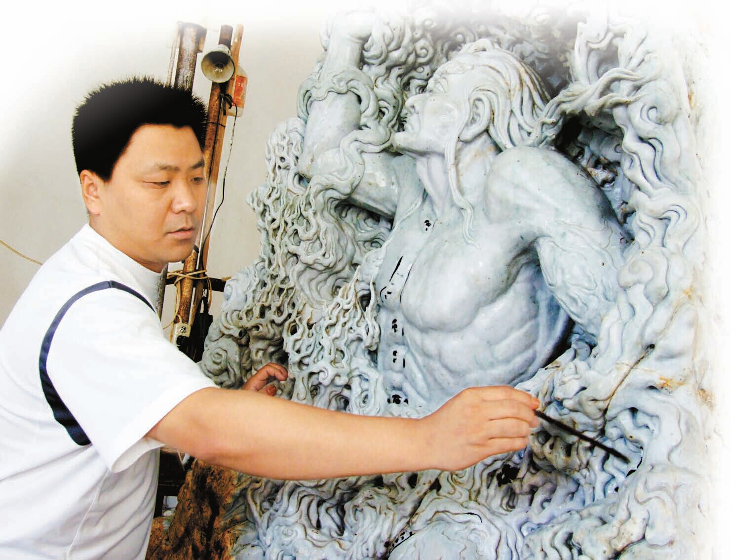 李東是「國學玉雕」理念的首創者,他汲取了南北派玉雕之長,深得中國玉文化精髓。好的玉雕作品要有好的主題,玉乃萬物之靈聚,人乃萬物之主宰,還原自然給予玉以人的主宰之氣才是正果。
