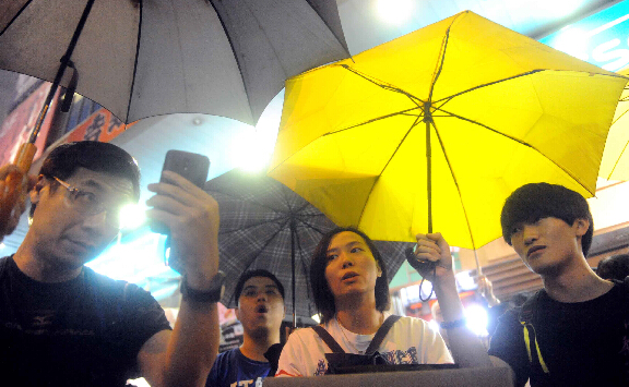 28日,香港违法的“占中”行动刚好满月。当天傍晚,“占中”行动在旺角占领区举行集会。中通社