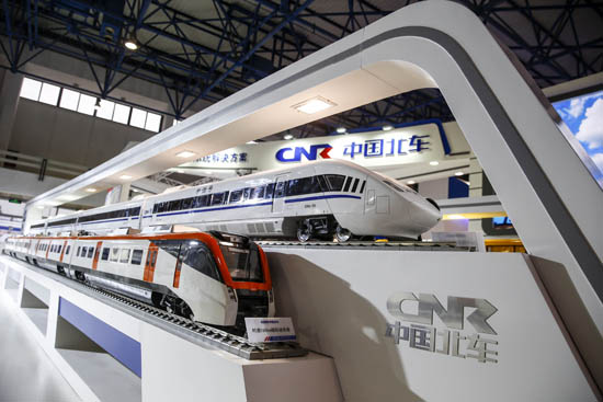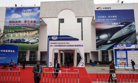 10月28日至31日,第十二屆中國國際現代化鐵路技術裝備展覽會在北京舉辦,中國北車和中國南車分別有不同展位,這將是他們合并前最后的單獨展示,圖為中國北車展位。中國交通運輸部主管的網站28日發布消息稱,已從相關方獲得確認,中國南車、中國北車將進行合并,“但合并的具體時間和方案尚未獲證實”。中國北車和中國南車由原中國鐵路機車車輛工業總公司分拆而來,目前同為中國高鐵和地鐵車輛等裝備的主要生產商。