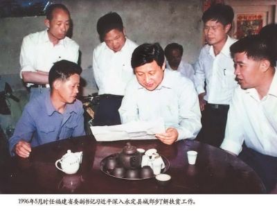 一九九六年五月,時任福建省委副書記習近平深入永定縣城郊鄉指導扶貧工作。