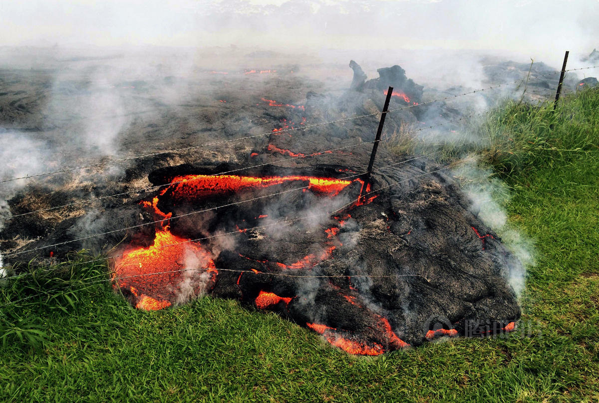 坐落在夏威夷大島的基拉韋厄火山從1983年就開始不時噴發。最近該火山噴出的岩漿是從一個新的火山口噴出的,岩漿緩慢流動,溫度高達1000攝氏度。岩漿所到之處無不化為灰燼,成為焦土。