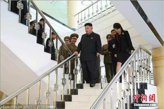當地時間2014年10月29日,據朝中社報道,朝鮮領導人金正恩近日拄拐攜夫人李雪主亮相,視察改建的軍人餐廳。圖片來源:東方IC
