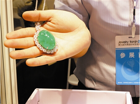 天津北方網訊:昨日,在梅江國際會展中心開幕的2014第九屆天津國際珠寶首飾展覽會上,海內外設計師團隊帶來的彩色鑲嵌珠寶向人們展示了最新的珠寶設計潮流。身價數千萬元級別的老坑冰種翡翠、哥倫比亞祖母綠令人大開眼界,來自中國臺灣地區的120個展團格外受歡迎,他們帶來的臺灣珠寶“三寶”吸引了眾多市民購買。
