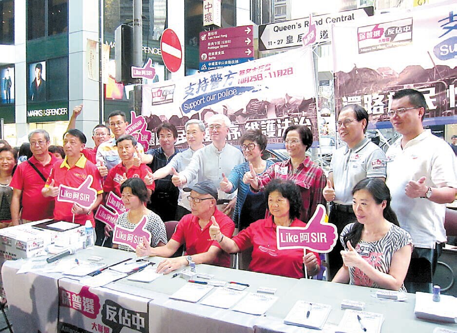 海南社團總會常務副會長陳閃昨日現身何文田廣場的街站時表示,該會在旺角、土瓜灣、紅磡等地共設8個街站,至昨天已經收集到3萬份簽名,證明市民對「佔中」怨氣大,批評「佔中三子」及「雙學」不要再聲稱代表香港人,呼籲學生不要再霸佔道路。海南社團總會副會長李秉湧亦批評,「佔中」是背後的政治力量在煽動善良的學生搞事,市民對長達個多月的無政府狀態忍無可忍,希望警方加大力度執法。