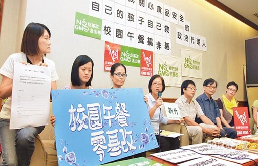 臺大農藝系教授郭華仁、主婦聯盟環境保護基金會及綠色陣線協會等團體組成“臺灣無基改推動聯盟”,不少媽媽主動擔任志工,四處游說候選人簽署承諾書,要他們將“基改食品退出校園”納入政見。