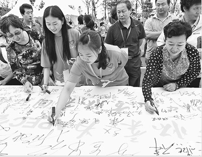 北京市民簽名倡導“從自身做起為APEC會議做貢獻”。本報記者 李維娜攝