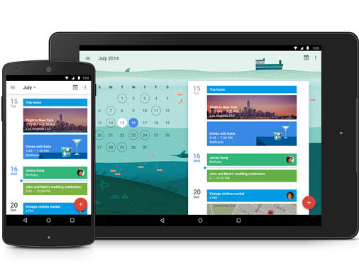 新版日曆應用采用了穀歌的最新Material Design風格,從而給用戶帶來更加愉悅的瀏覽體驗。不過,此次改版的最大特點還在於,可以讓用戶更加便利地添加和瀏覽各種事件。