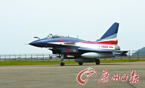 本報珠海訊 (記者陳治家 通訊員曾遙、陳全、張建林 攝影報道)距11日開幕的第十屆中國國際航空航天博覽會還有6天,但來自中國人民解放軍空軍八一飛行表演隊的8架殲-10戰機和來自俄羅斯空軍參展的蘇-35戰機已于昨日飛抵中國航展舉辦地珠海。中國首批殲擊機女飛行員將在航展上駕駛殲-10表演機進行特技飛行表演,為航展觀眾奉獻“藍天芭蕾”。