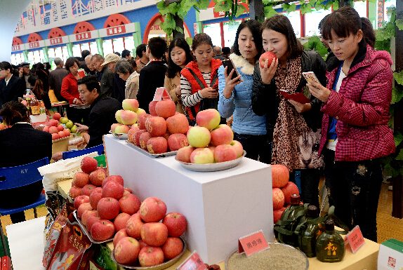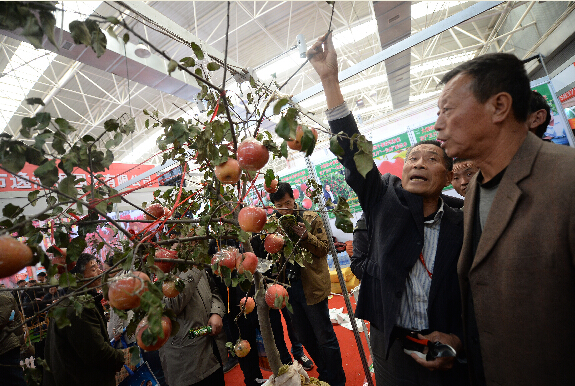 11月6日,參觀者在農高會上參觀選購蘋果