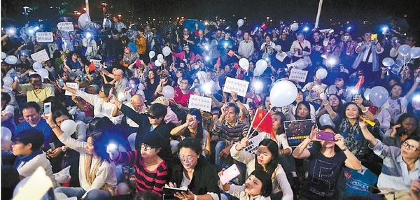 【香港商報訊】記者王珈莉報道:違法佔領行動持續至今,嚴重影響市民日常生活,然而佔領人士仍無意撤離。昨晚市區下著滂沱大雨,但無減市民參與「反佔中」晚會的心情。約500名市民昨晚參與網上組織「佔中不代表我」舉辦的「全民歡送會」,多名市民前後上臺發言,要求佔領人士盡快離開佔領區,及支持警方執法清場。