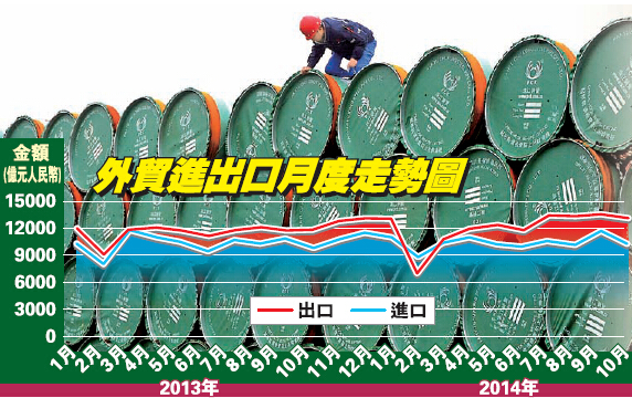 10月數據總體符合預期,中國8月經濟是一個低點,之後中國出臺了MLF為代表的流動性寬鬆措施,出臺了房地產限購政策調整支持,並且新開工和加快審批了高鐵為代表的基建項目,對經濟短期回升發揮了主要的作用,這樣帶動了進口增加,而出口這一塊,我們一貫判斷是,延續前期緩慢回升態勢,因為上半年比較差,和經濟向好格局是不匹配,伴隨著新訂單進入交付階段,出口向經濟向好回歸是正常的,預料3至4季度都是這樣的趨勢。