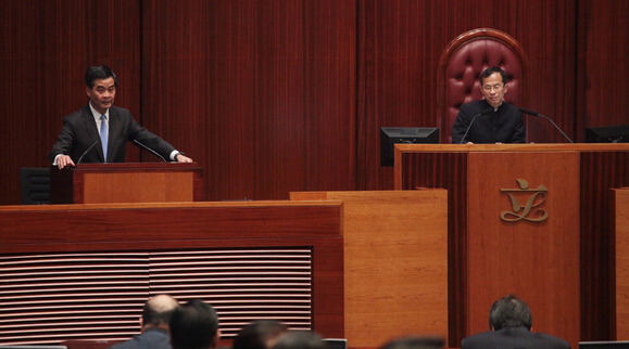 資料圖:梁振英與曾鈺成在立法會