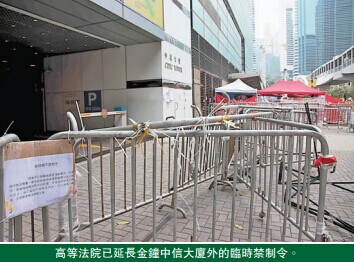 【香港商報訊】記者周偉立報道:高等法院本周一延長金鐘中信大廈外、旺角彌敦道和亞皆老街等占領地點的禁制令;更授權警方,如果有人阻礙執達吏執行禁制令,可采取拘捕行動。昨日有不少留守者表示,不會阻止執達吏或警方拆除路障,有人更指在需要時會主動協助他們清走鐵馬;另亦有占領人士聲稱,伺機再卷土重來。