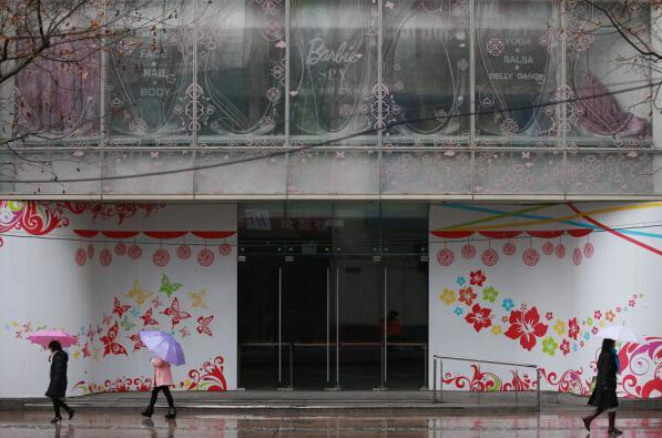 2014年2月18日,淮海中路黃陂南路至陝西南路段,一家商鋪關門歇業。 澎湃新聞記者 張新燕 圖