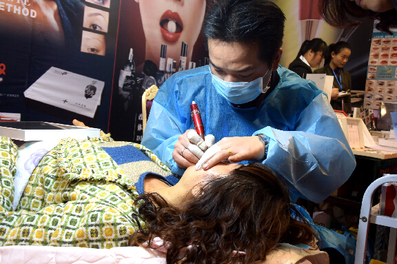 11月11日,在濟南舉辦的2014中國(濟南)國際美容化妝品產業博覽會上,植眉、紋唇、美發等臨床美容大受熱捧,吸引了大量參觀者前來體驗。美博會為期三天,集中展示日用化妝品、美體、美發產品、整形美容儀器設備等美容產業系列產品和技術。