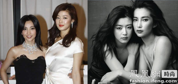 全智贤拿下李冰冰曾经的国际大牌代言,实在让人感叹!二人在2011年合作了好莱坞文艺片《雪花与秘扇》,在片中穿越时光,甚至大玩拉拉情,李冰冰凭借此部电影成功进军好莱坞,和全智贤还为美国版VOUGE拍摄了内页大片,双双出席国际红毯和电影节。殊不知3年后全智贤凭借《来自星星的你》跻身亚洲Icon级女神,接替李冰冰的Gucci代言宝座。
