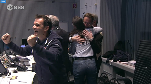 歐空局控制中心的科學家激動不已