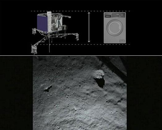 “菲萊號”探測器大小相當於一台洗衣機,下圖為傳回的彗星表面首張照片