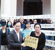 她又認為,「占中」主張以違法手段抗爭,但安排部分人刻意挑釁,制造紛爭,繼而「推」學生作擋箭牌,并用雨傘作武器攻擊警察,這邊廂叫人聚集留守,另一邊廂又說「占中」已沒有主導者,行為無賴,不單不負責任,更豪無誠信,枉陳健民及戴耀廷均是大學教授,簡直禍人子弟,危害社會,由於教育是十分重要的一環,故她要求中大及港大將二人辭退,以正視聽。被問到「占中」現時情況,她直言,「保普選·反占中」大聯盟早前於短短9日內收集了180多萬個簽名,起碼有180萬市民已清楚表達「反占中」立場,主流民意是很明顯,但雙學、「占中三子」卻連民主精神都不懂,根本不知道尊重及少數服從多數。沙官副校長:擬卷貼近生活沙官副校長杜景文親身接收請願信解釋,涉事測驗卷是中文科,旨在考核同學應用四字成語的能力,擬卷時亦經中文科主任及全級中文科老師審核,擬卷時只希望提供較貼近生活的情景,令同學有印象,較易掌握題目,對於題目引起誤會,校方表示歉意,會以教育專業原則處理事件。副校長續稱,日后擬題時會從多方面考慮,校方以前、現在或以后,都會繼續保持政治中立;而中大及港大則有派員接信,但沒作回應。