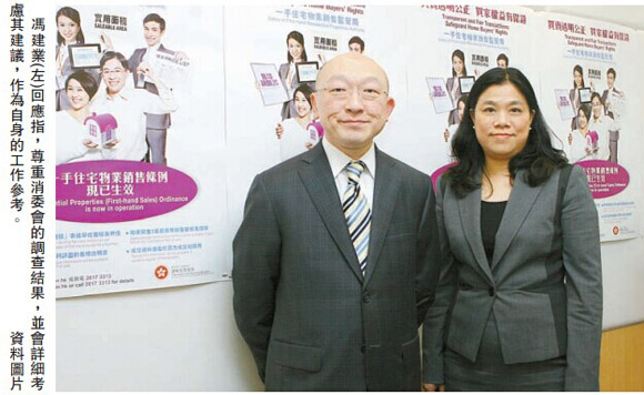 【香港商報訊】記者劉思桐報道:一手新例迄今已實施約一年半,消委會日前發布研究報告稱,新例實施效果令人失望并提出八項建議,當中數項涉及修例。一手住宅物業銷售監管局專員馮建業昨於記者會回應指,尊重消委會的調查結果,并會詳細考慮其建議,作為自身的工作參考。他強調,一手新例目的是為提高售樓的透明及公平性,其實施亦帶來不少進步和成果,修例與否言之尚早。