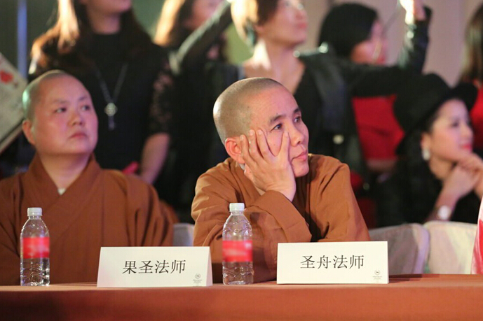 11月11日,上海,2014環球夫人大賽上海區總決賽舉行。期間,來自全國各地的“夫人”亮相舞臺,分別展示古今民族裝、旗袍、晚禮服,她們中多為企業女老板。果圣法师和圣舟法师当评委。