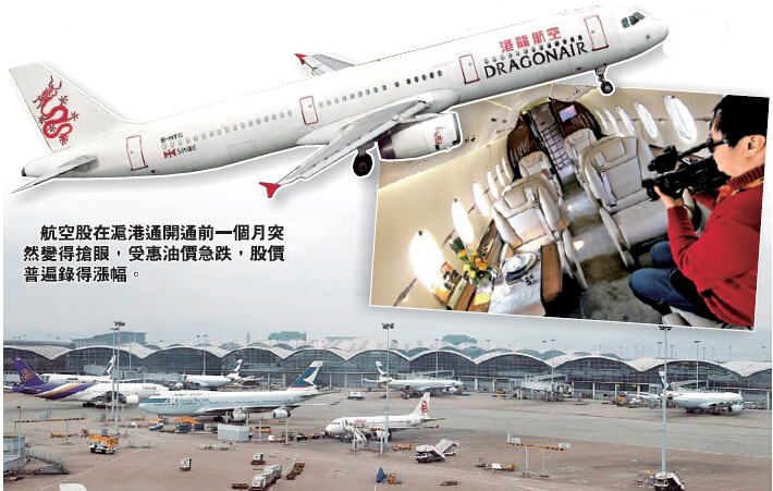 航空股在滬港通開通前一個月突然變得搶眼,受惠油價急跌,股價普遍錄得漲幅。內地航空股今年業績大倒退,展望未來則要面對國家政府推動廉價機票,及愈來愈多民營廉價航空加入競爭,縱使行業整體發展前景廣闊,傳統航空巨企長遠受惠未必太多。香港商報記者陳輝