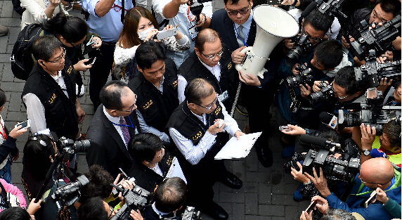 香港高等法院執達主任今日前往金鐘中信大廈執行禁制令,宣布清除障礙物。中新社