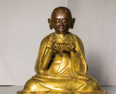 由西部古城提供的鎏金上師尊,上師身披祖衣,鎏金渾厚,禪定蓮座法像莊嚴慈祥。手持經書神態安祥,造型惟妙惟肖。突出再現了上師滿腹經綸,集三學三身的慈悲智慧化身。仿佛聽到了上師誦經祈禱的天籟梵音布遍四方,響徹宇宙。