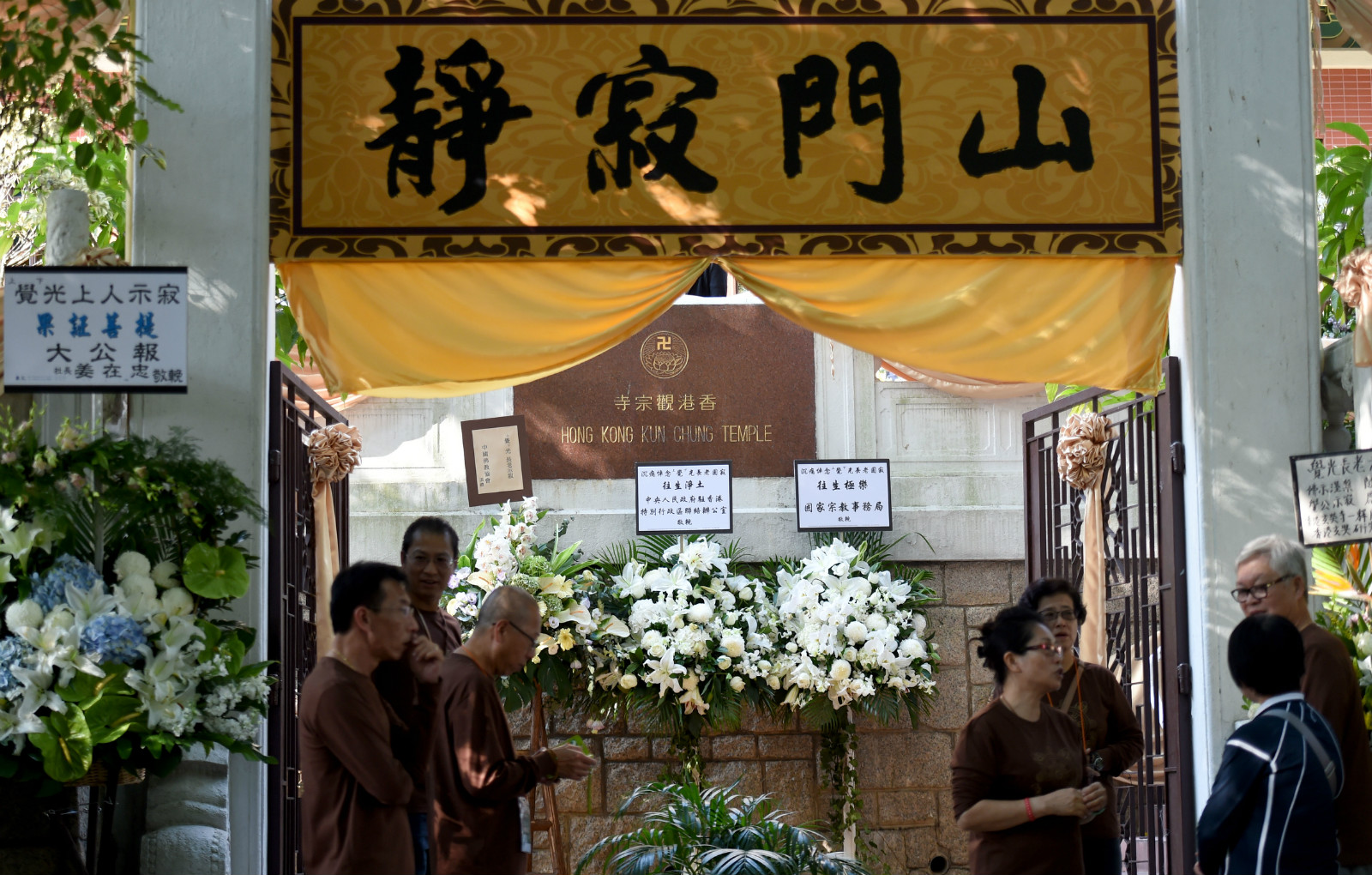 【香港商報訊】記者王珈莉報道:香港佛教聯合會會長覺光法師本月16日清晨4時51分圓寂,世壽95歲。「覺光長老圓寂追思讚頌儀典」暨封棺儀式昨午3時在粉嶺觀宗寺舉行,寺前牌坊掛上「山門寂靜」4個大字。覺光法師的弟子和信眾在門前迎接來賓,行政長官梁振英、中聯辦主任張曉明、政務司司長林鄭月娥、長實集團主席李嘉誠、行政會議召集人林煥光等多名政商界人士及其他宗教領袖到場弔唁。大批市民及佛教徒則在觀宗寺附近的佛教寶靜安老院弔唁。