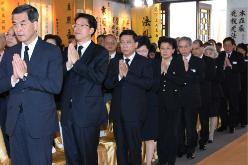 行政长官梁振英、中联办主任张晓明、国家宗教事务局副局长蒋坚永等亲临吊唁。