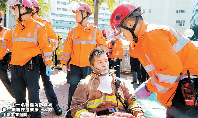 在大爆炸中受傷的9名消防員(28歲至53歲),其中7人情況危殆,包括1名姓梁消防總隊目(49歲),其餘1名消防隊目及1名消防員則情況嚴重。命危的姓梁總隊目,頭部受傷,正在瑪嘉烈醫院接受腦部手術,昨午5時半完成後,被推上深切治療部留醫,其餘受傷消防員,主要是面部和手部燒傷。消防處處長黎文軒到醫院探望受傷同袍後表示十分難過,又稱處方已成立專案小組調查,包括爆炸原因及救援程序,他指部門日常訓練有包括氣體洩漏處理,而消防裝備亦均符合國際標準。
