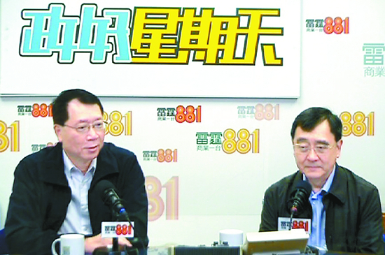 科技大學經濟發展研究中心主任雷鼎鳴(左)与港大经济学讲座教授王于渐出席电台节目