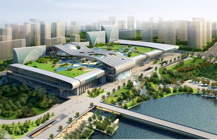 位于杭州錢江世紀城內的杭州國際博覽中心工程是杭州奧體博覽城的啟動項目工程,總用地面積19萬平方米,建筑面積85萬平方米。建成后,是一座集會展、會議、商務、休閑、娛樂為一體的大型博覽中心。能夠滿足像APEC、達沃斯論壇等高標準國際會議的需要,展覽部分設了7500個國際標準展位,其中還包括室外展位1000個,而上蓋物業為三座塔樓,分別設計為高檔商務辦公和五星級酒店。