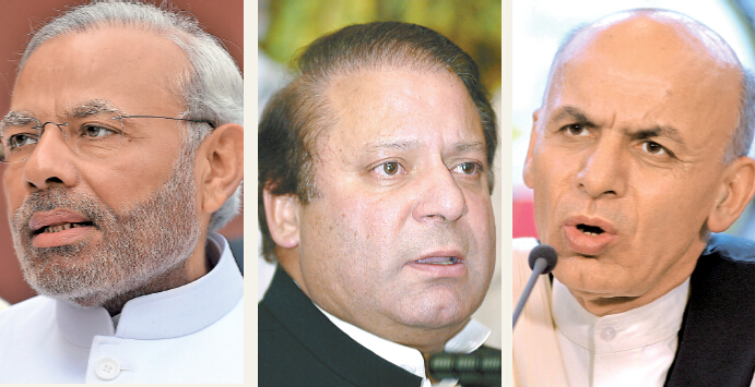 印度總理莫迪(左)、巴基斯坦總理謝里夫(中)、阿富汗總統加尼(右)都希望中國能夠進一步參與調停南亞地區的衝突