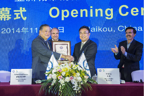 泰國曼谷總督素坤潘·帕里巴特拉與海口市市長倪強交接AMF輪值主席。