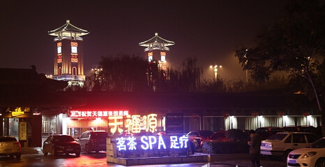 天福源會所位于阜陽市潁上北路新泉河橋處,當地人習慣叫三里灣大橋。泉河像一條玉帶貫通阜陽城區,為這座皖北城市增添了些許靈性。在泉河與河濱路之間的一大片區域,過去的數年當中,當地政府花費了不少的精力投入巨資打造了泉河景觀帶,此舉也改變了阜陽城區的城市面貌,給廣大的群眾增添了休閑健身旅游的好去處。