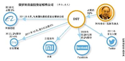 有趣的是,不管投資中國的阿裡巴巴、京東、小米,還是投資國外的Facebook、遊戲網站Zynga等項目,烏斯馬諾夫都是通過俄羅斯投資公司DST Global(數字天空科技)運作,據俄語商業日報Vedomosti報導,他擁有DST約32%的股份。