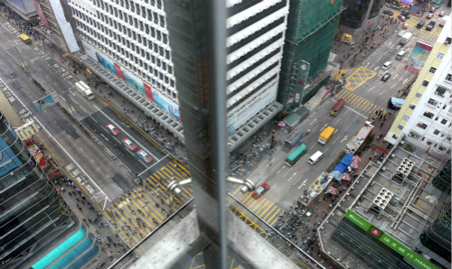 11月26日,恢复交通的香港旺角弥敦道(左)和亚皆老街十字路口。新华社记者秦晴摄