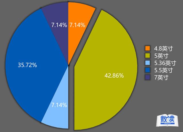 配備5英寸、5.5英寸螢幕的機型佔據了近八成的比例,由此推測該價格區間的產品比較注重持握與視覺體驗的平衡性。