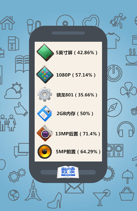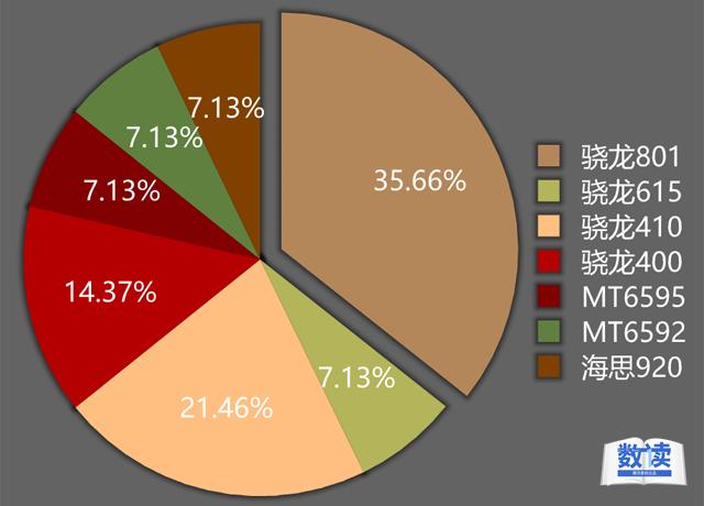 近八成該價位段手機使用的是驍龍CPU,其中驍龍801的占比最大。可見2000元價位的部分機型在配置上並不輸于高端智慧手機。