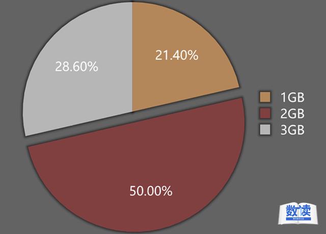 可以看到,半數機型都標配了2GB運行記憶體,而使用3GB記憶體的手機占比也接近三成,配備大記憶體已成為Android手機的發展趨勢。