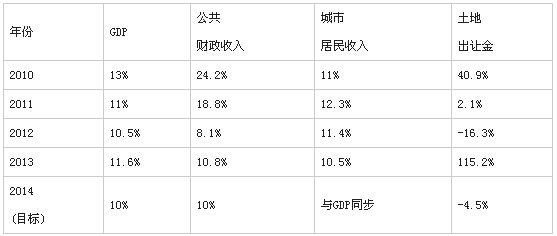 從2010到2012年,前述數據之間漲跌基本同步,即經濟發展成績相對越好的年份,公共財政收入越高、土地交易收入越高、市民收入增長也越快。但2013年打破了這一規律,雖然賣地收入以絕對優勢位居四年之首,但同年的GDP增速排第二,公共財政收入增速排第三,城市居民收入增幅更是墊底。