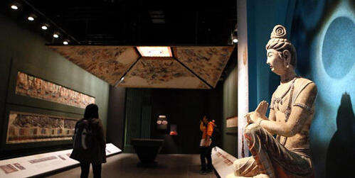 該展覽從11月28日起至2015年3月16日舉行。該展覽不僅是本港歷來最大規模的敦煌文物展,也是香港文化博物館自開館以來所舉辦最大面積的展覽,展廳面積達2300平方米,展示約120組精選展品。(新華社記者 李鵬 攝)