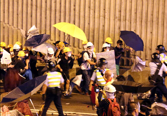 沖擊期間,暴徒蓄意向警務人員投擲物品,包括水樽(飲用水瓶)、頭盔和胡椒粉,向警務人員照射強光和噴滅火劑,不停挑釁和辱罵警員以及不斷煽動在場人士沖擊警方防線。為免情況進一步惡化,警方必須采取果斷行動,以適當武力制止該等違法行為,驅趕及拘捕有關人士;但激進示威者無視警方的勸喻和警告,繼續沖擊警方防線。事件導致11名警務人員受傷,警方目前共拘捕40名人士,不排除有更多人士被捕。