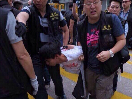 資料圖:11月26日,學聯副秘書長岑敖暉,中大外務書司徒子朗、學民思潮黃之峰均在旺角清場行動中被捕。次日獲準保釋。