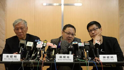 據香港媒體報道,“占領中環”的三名發起人戴耀廷、陳健民、朱耀明宣稱,將于明天下午3時到香港中區警署自首。