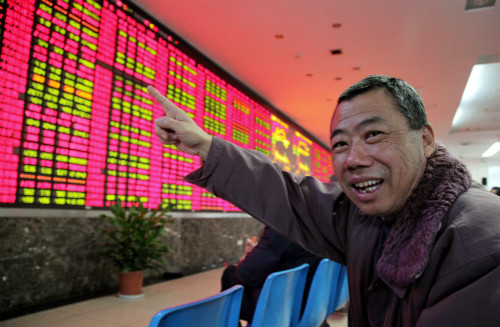 12月3日,股民在上海市金山区一证券公司股票交易大厅关注股市行情。