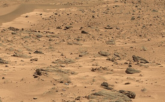 新浪科技訊 北京時間4日消息,據國外媒體報道,UFO迷們聲稱,他們在火星表面發現美國總統奧巴馬的頭像。這些專家指出,“勇氣”號火星車2005年拍攝的一張全景照展示了一塊形狀特別像奧巴馬頭部的岩石。他們懷疑,這可能是一座雕像的一部分。
