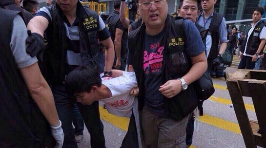 資料圖:11月26日,學聯副秘書長岑敖暉,中大外務書司徒子朗、學民思潮黃之峰均在旺角清場行動中被捕。次日獲準保釋。